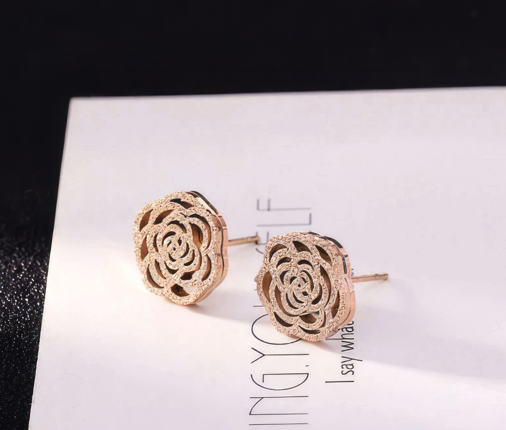 Camellia Flower Stud Earrings in Rose Gold