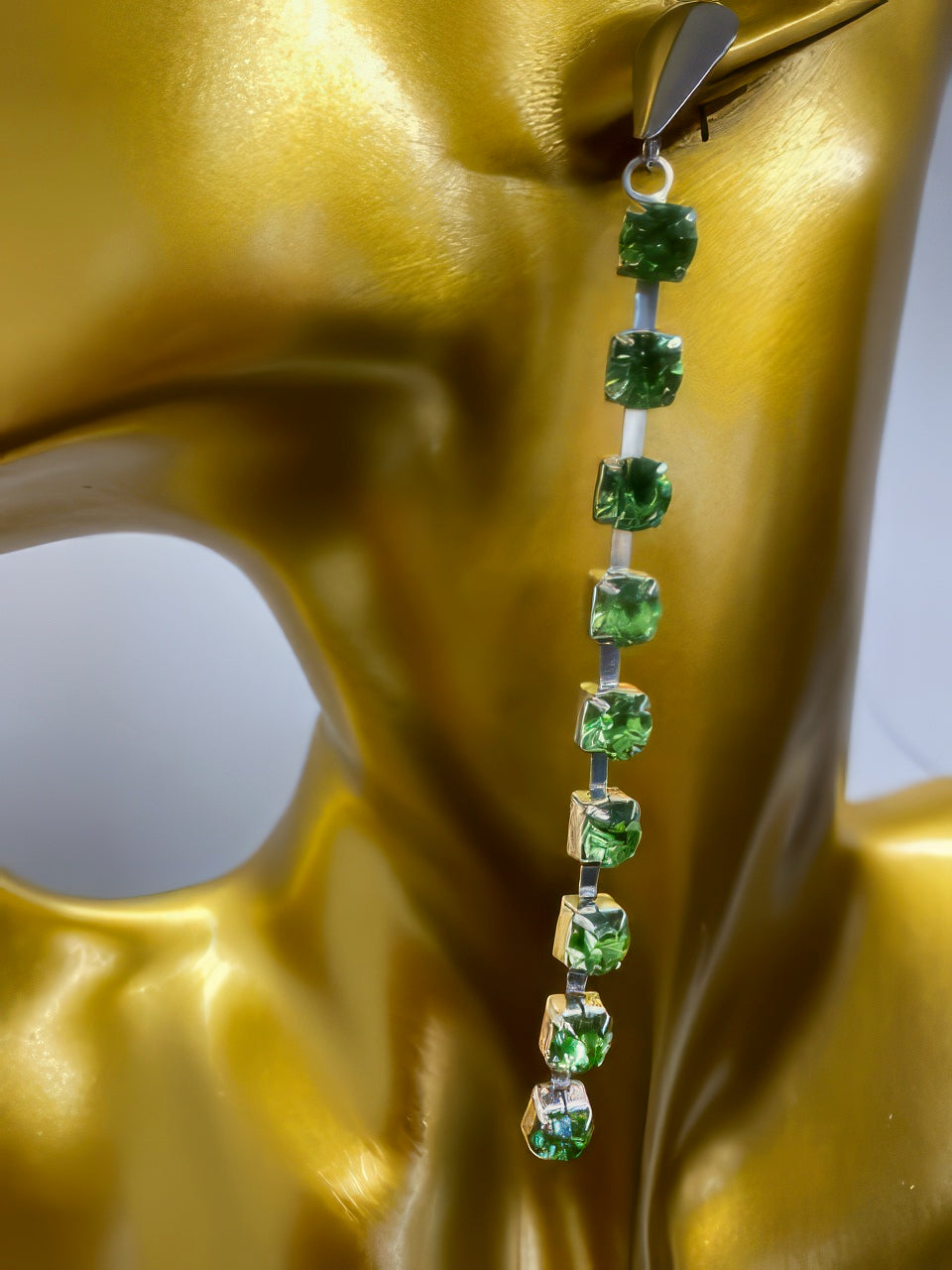 Drop 9 Link Crystal Earrings in Green